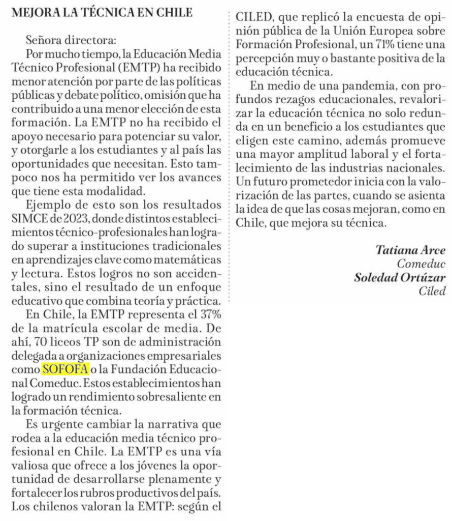 La Tribuna | Carta de Soledad Ortúzar y Tatiana Arce: Mejora la técnica en Chile