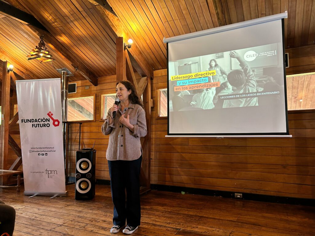 La instancia, realizada en Bahía Coique, comuna de Frutono, Región de Los Ríos, contó con la participación de la directora del Centro de Innovación en Liderazgo Educativo (CILED) de la Facultad de Educación UDD, Soledad Ortúzar, quien presentó una detallada exposición sobre la evidencia del liderazgo escolar y el impacto que este tiene en los aprendizajes.