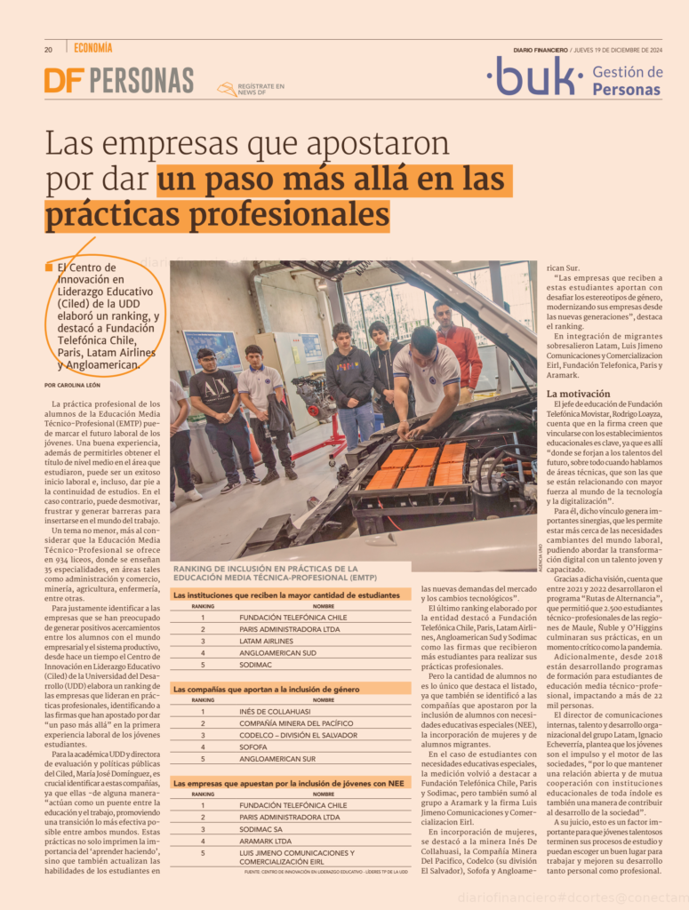 Diario Financiero | Estudio CILED: Las empresas que apostaron por dar un paso más allá en las prácticas profesionales