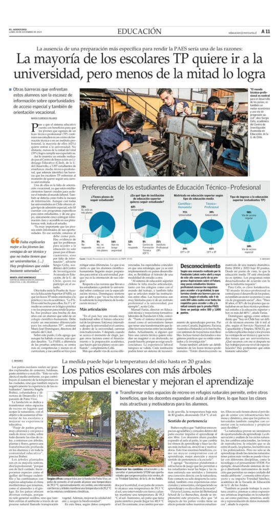 El Mercurio | Estudio CILED sobre las barreras que enfrentan los alumnos de la EMTP para ingresar a la universidad